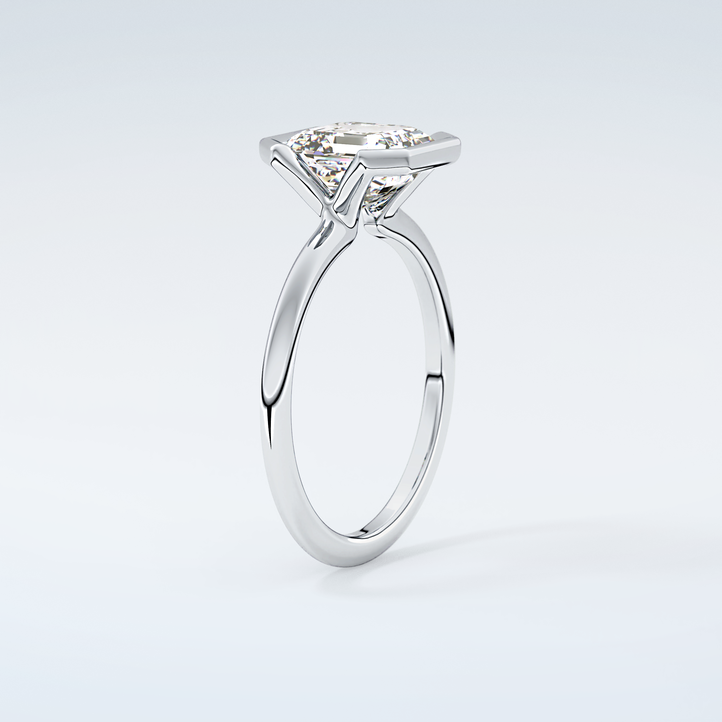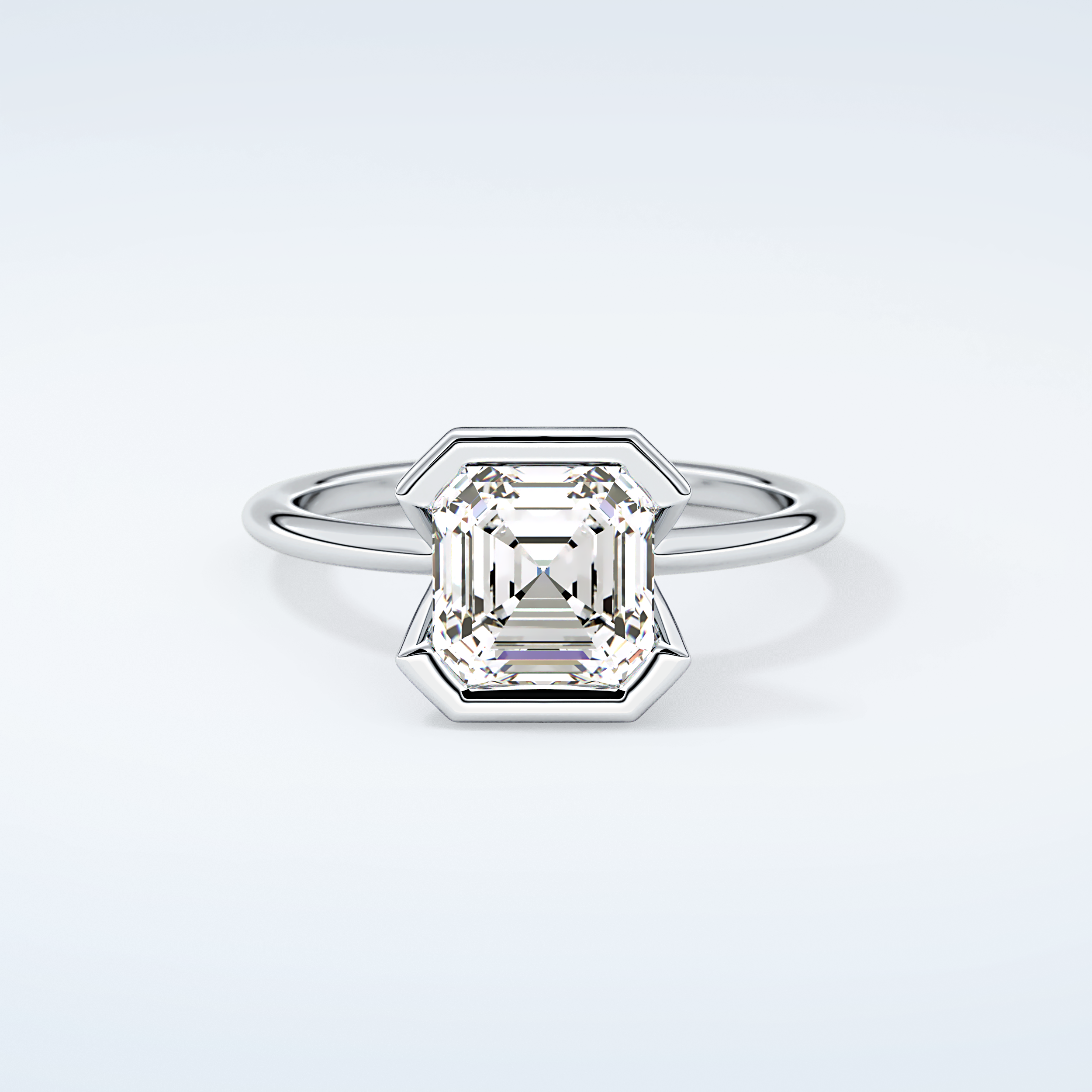 2.0 CT Asscher Cut Half Bezel Moissanite Engagement Ring
