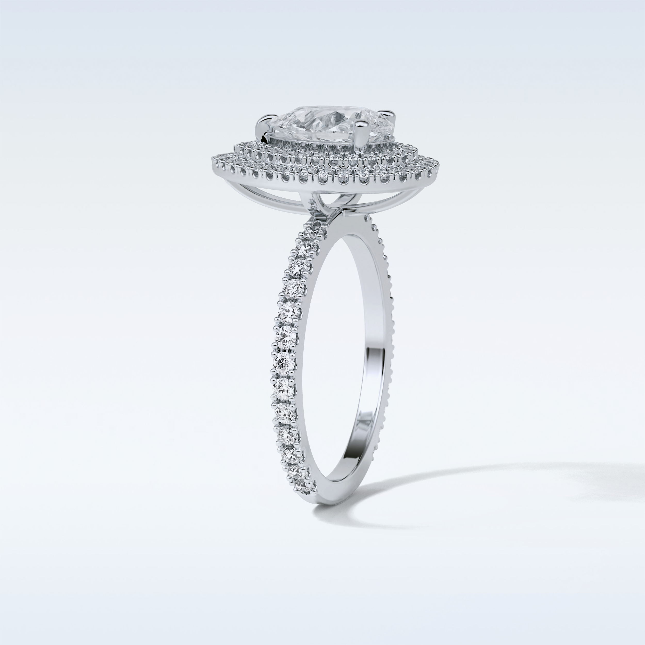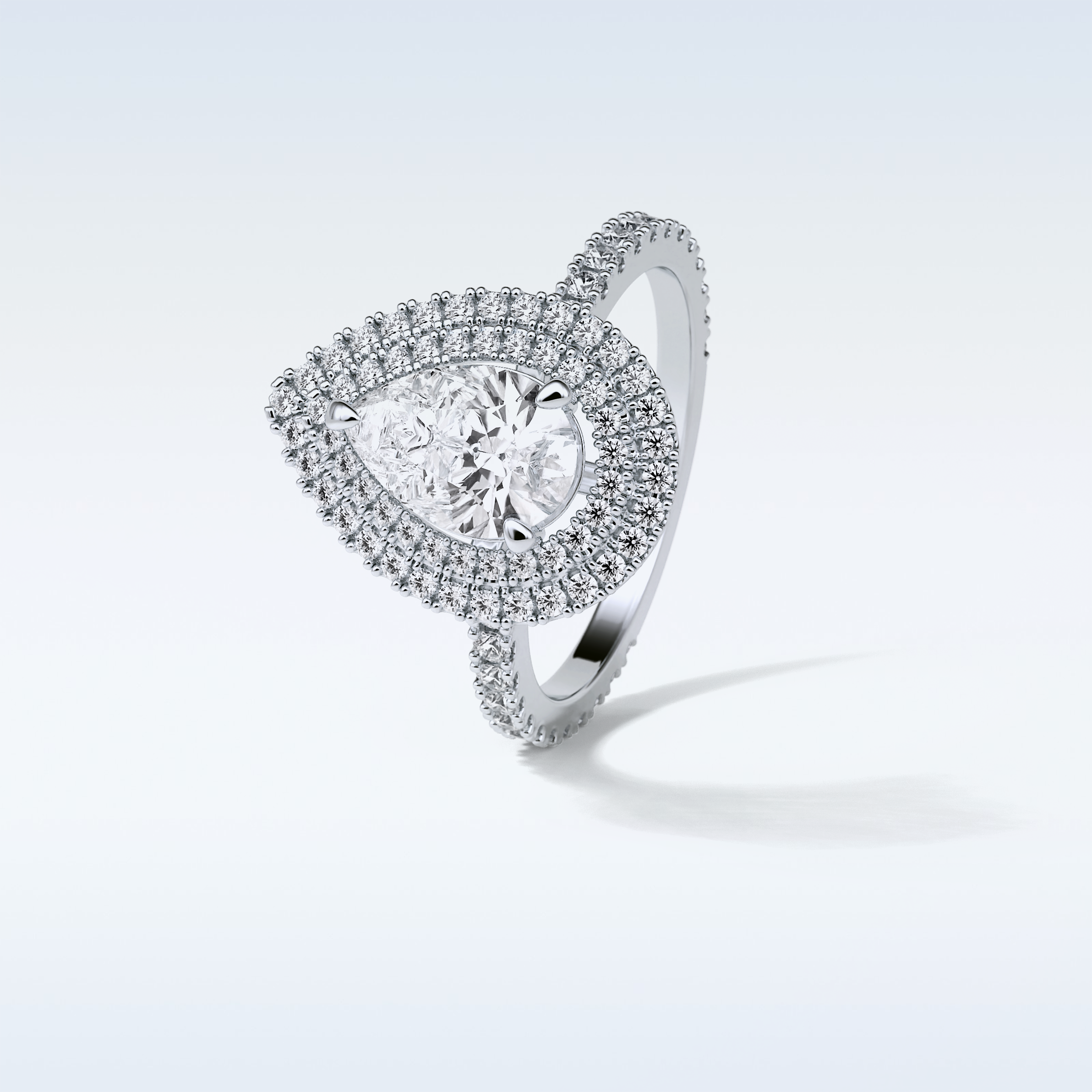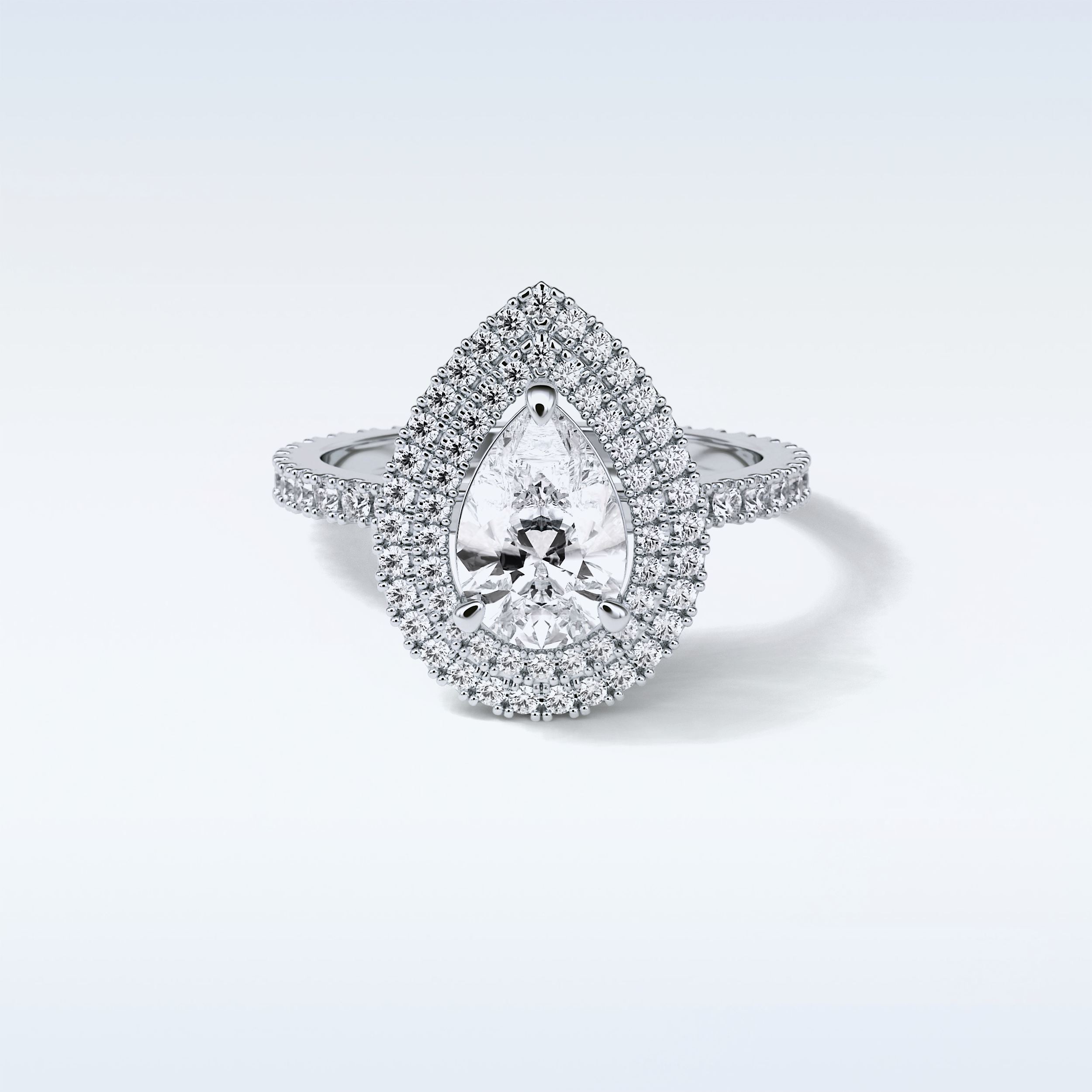 1.33 Double Halo Engagement Ring Featuring Pear Moissanite