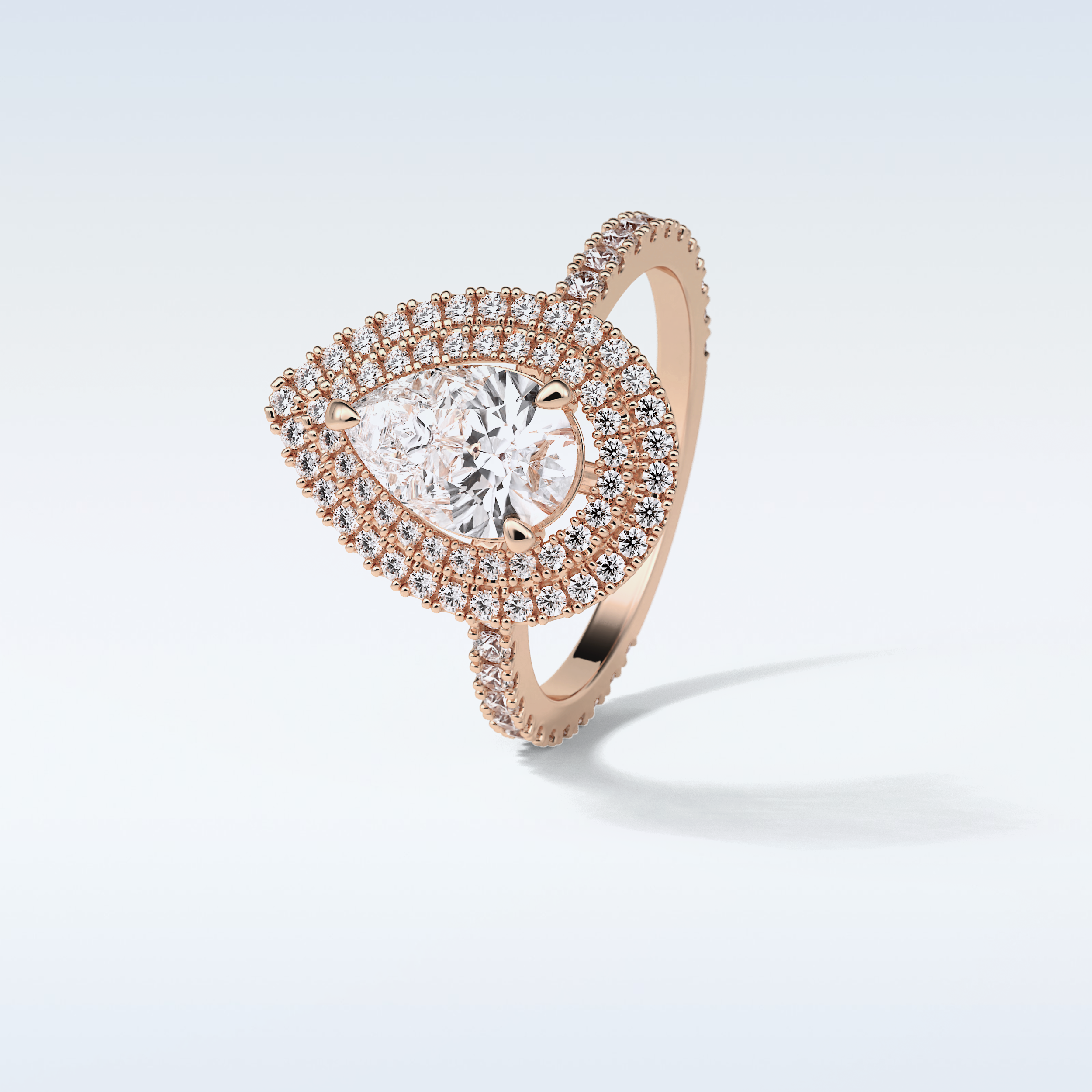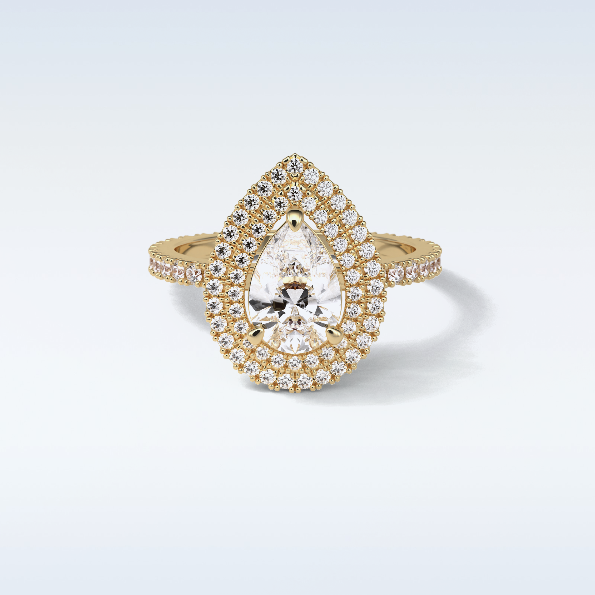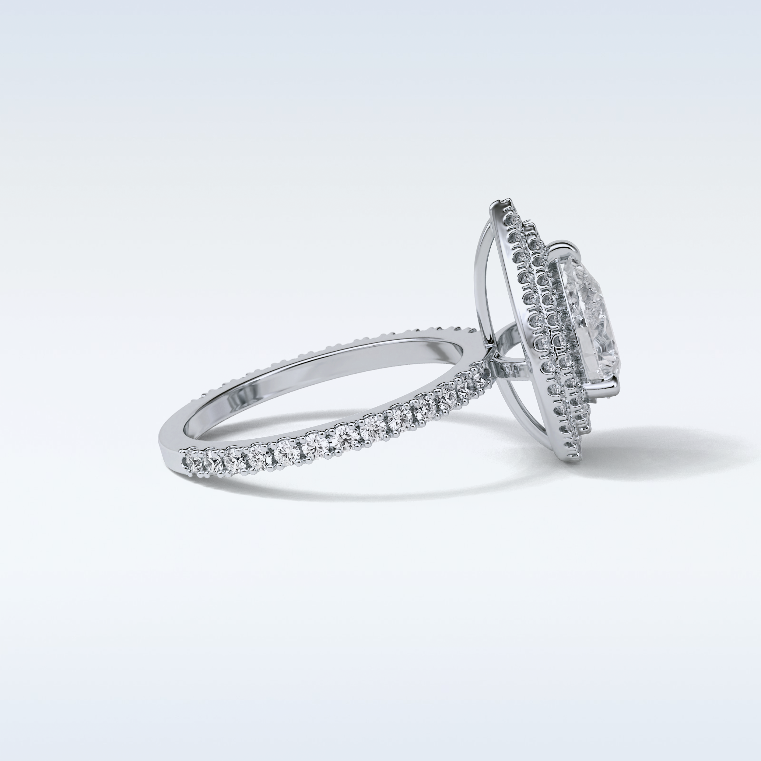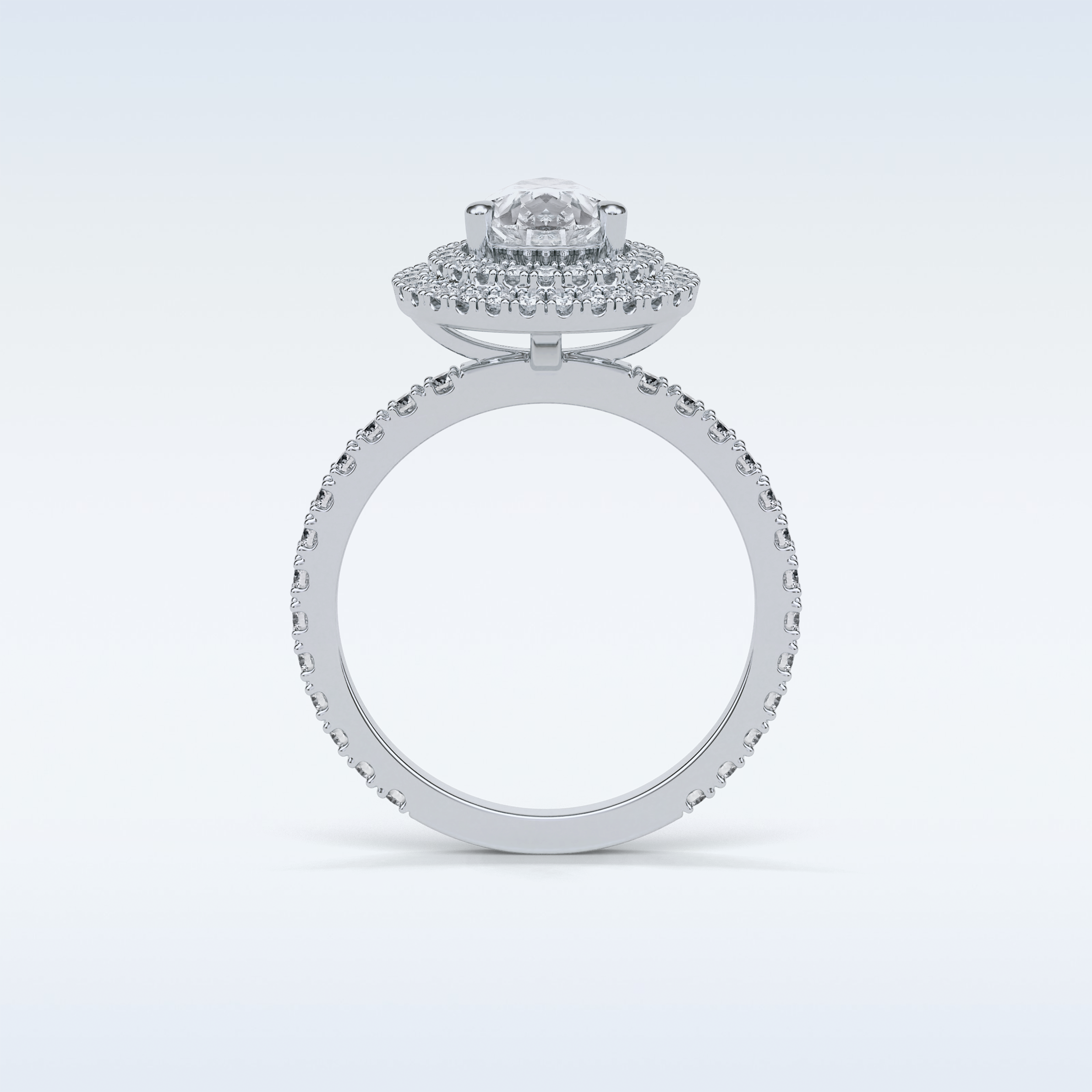 1.33 Double Halo Engagement Ring Featuring Pear Moissanite