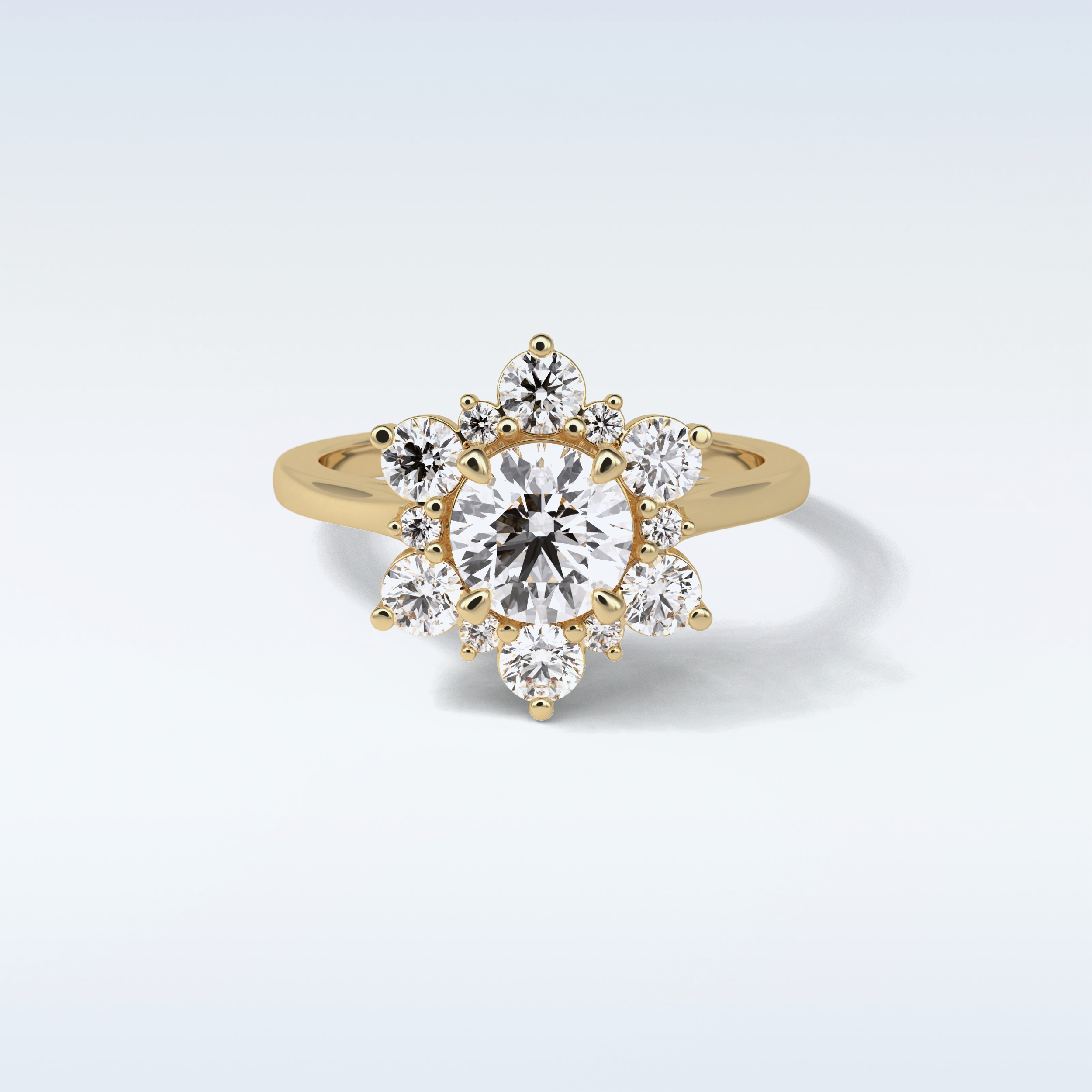 This stunning ring features a captivating 1 CT Round Moissanite as the center stone, complemented by dazzling Round stones. Set in your choice of 10KT, 14KT, or 18KT gold, it’s available in Yellow, White, or Rose Gold tones — a perfect blend of timeless elegance and modern brilliance.