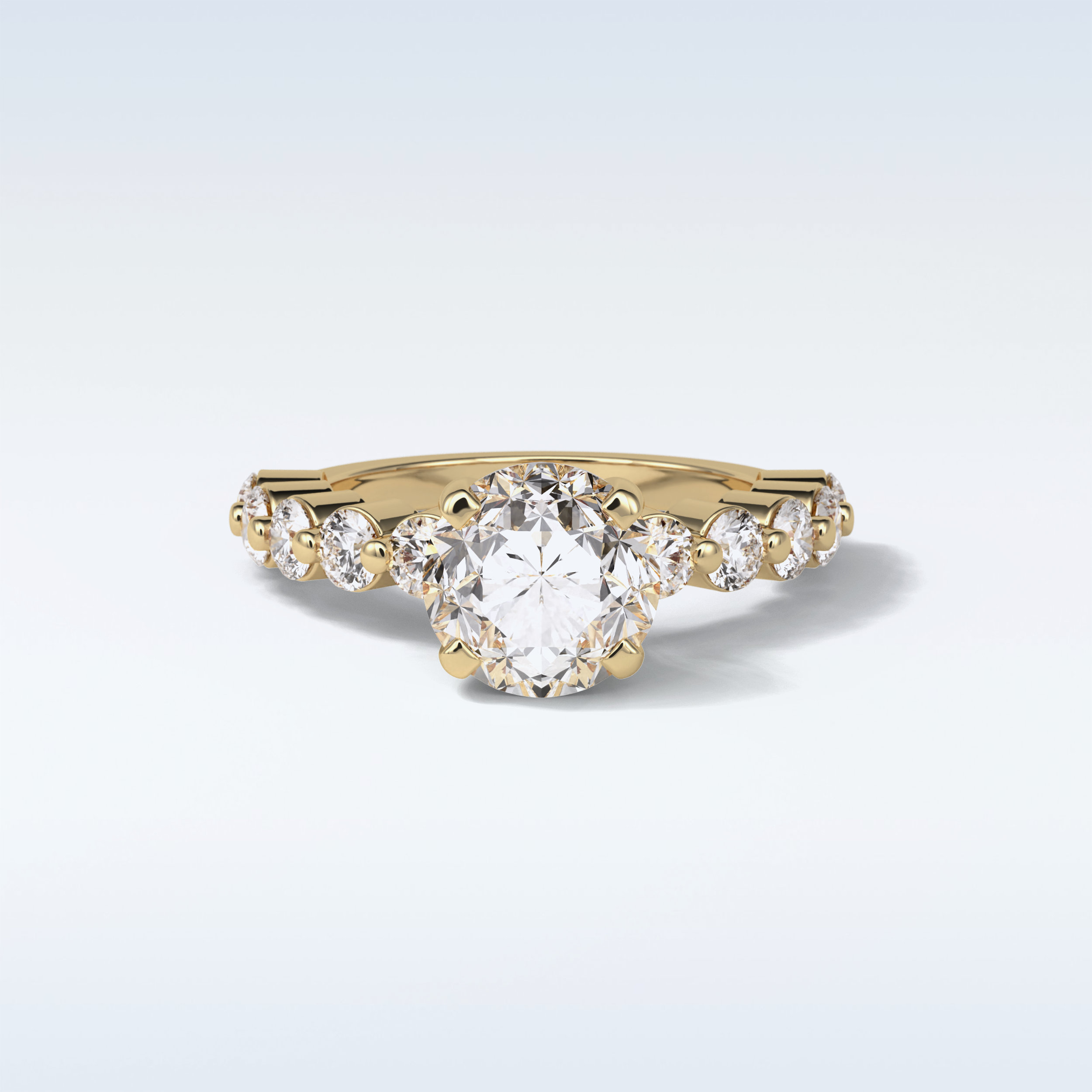 This stunning ring features a captivating 2.2 CT Round Moissanite as the center stone, complemented by dazzling Round stones. Set in your choice of 10KT, 14KT, or 18KT gold, it’s available in Yellow, White, or Rose Gold tones — a perfect blend of timeless elegance and modern brilliance.
