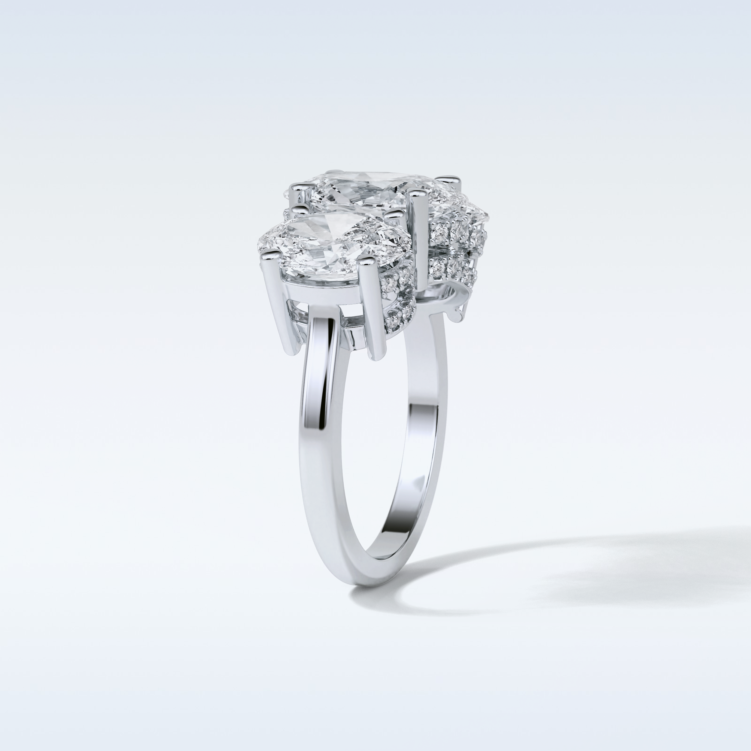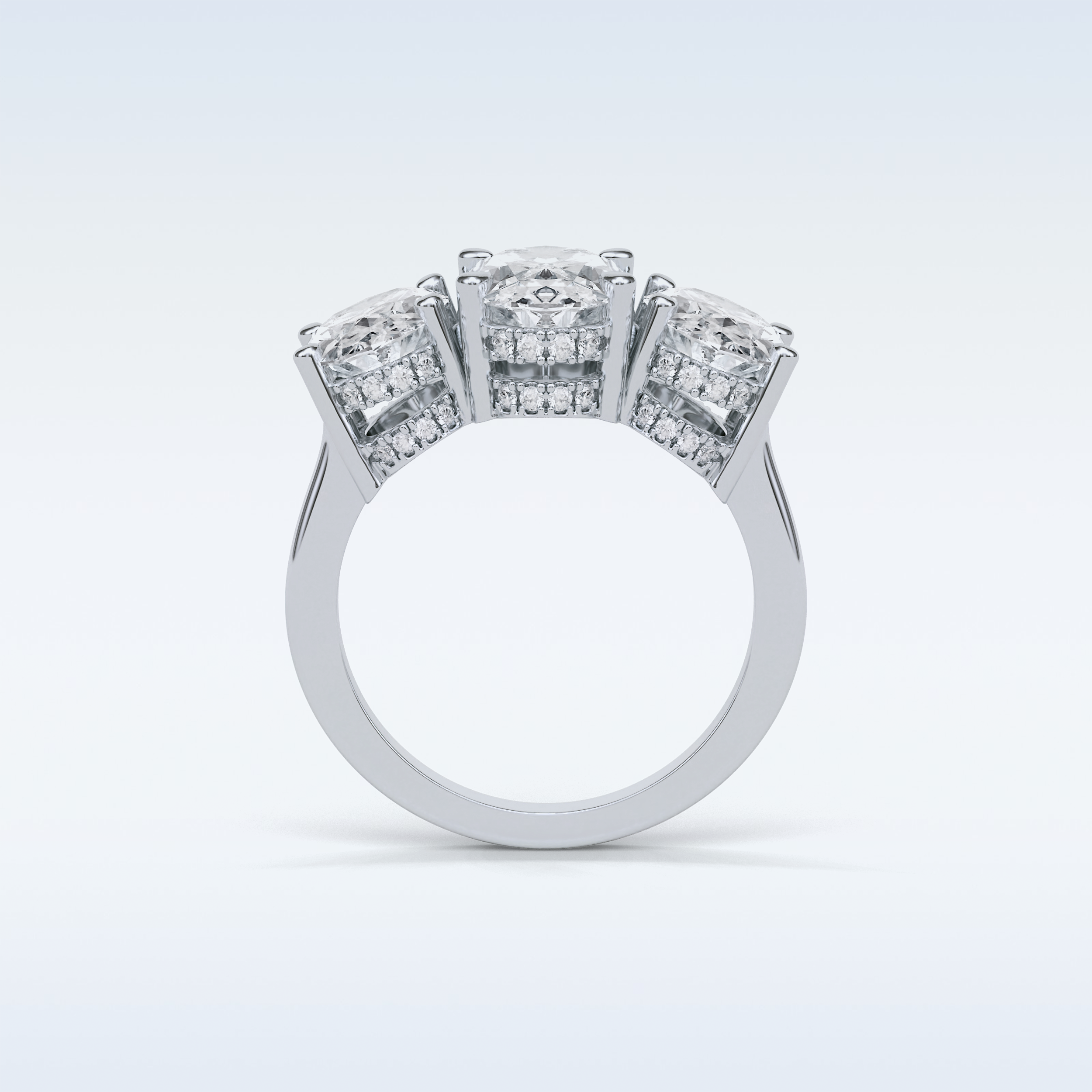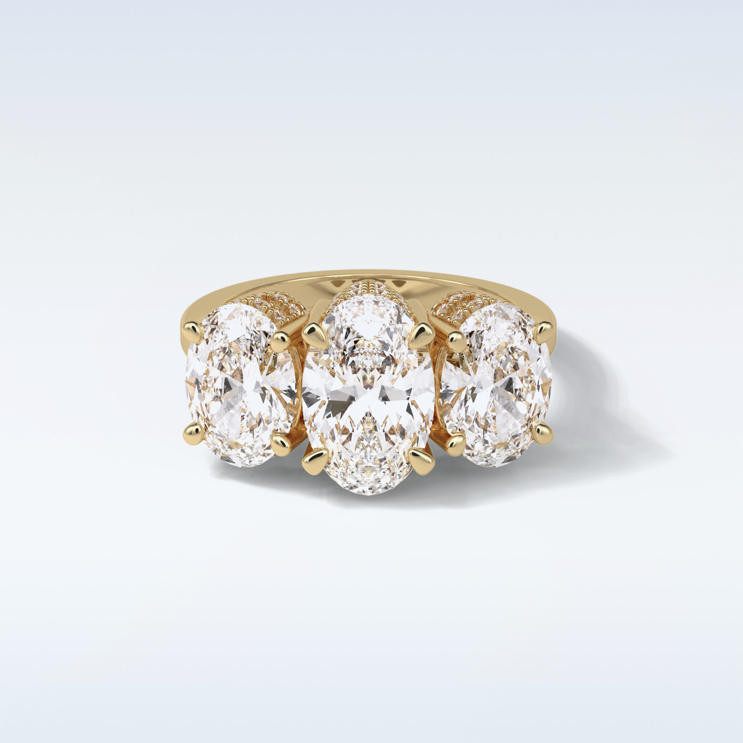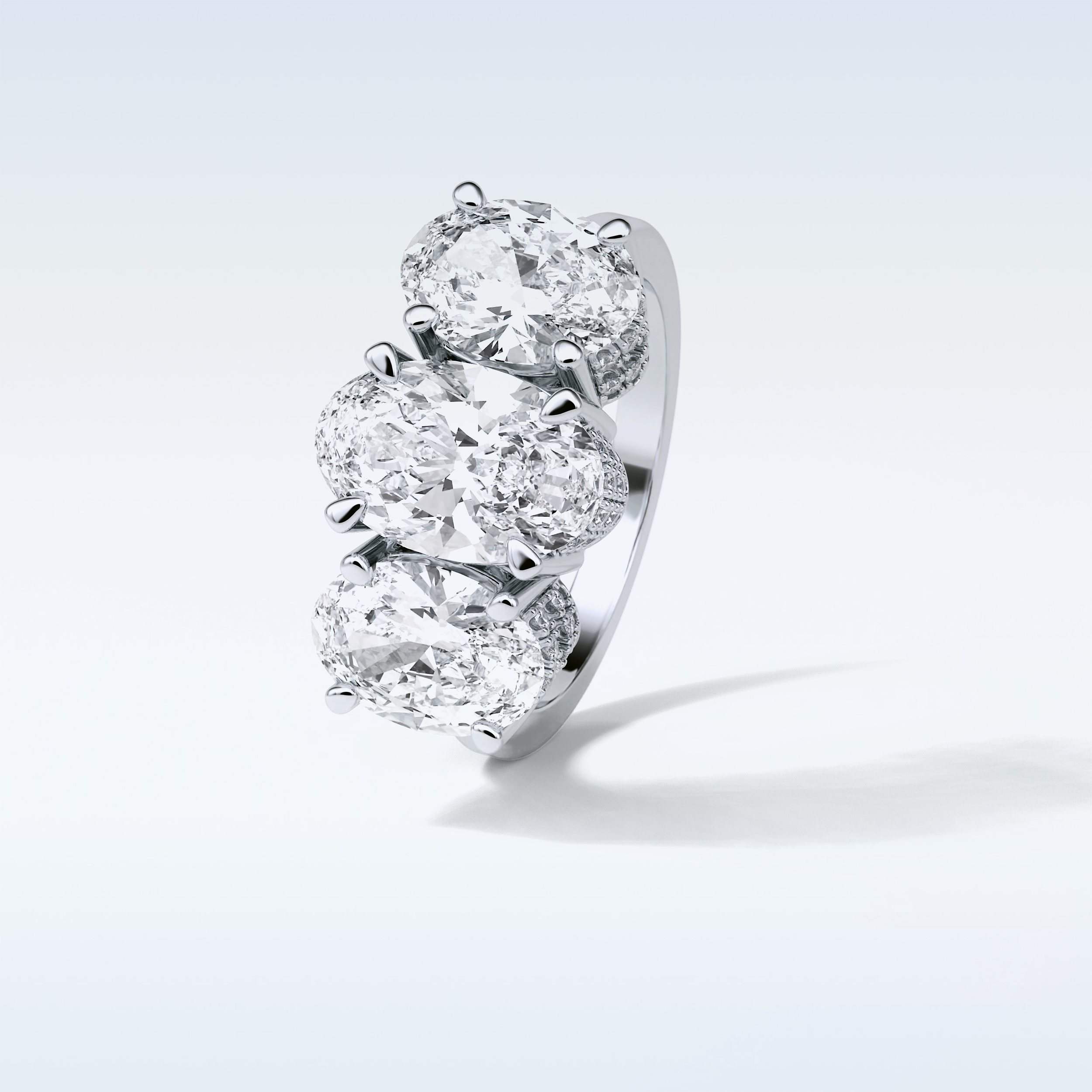 2.35 CT 3 Stone Engagement Ring Featuring Oval Moissanite