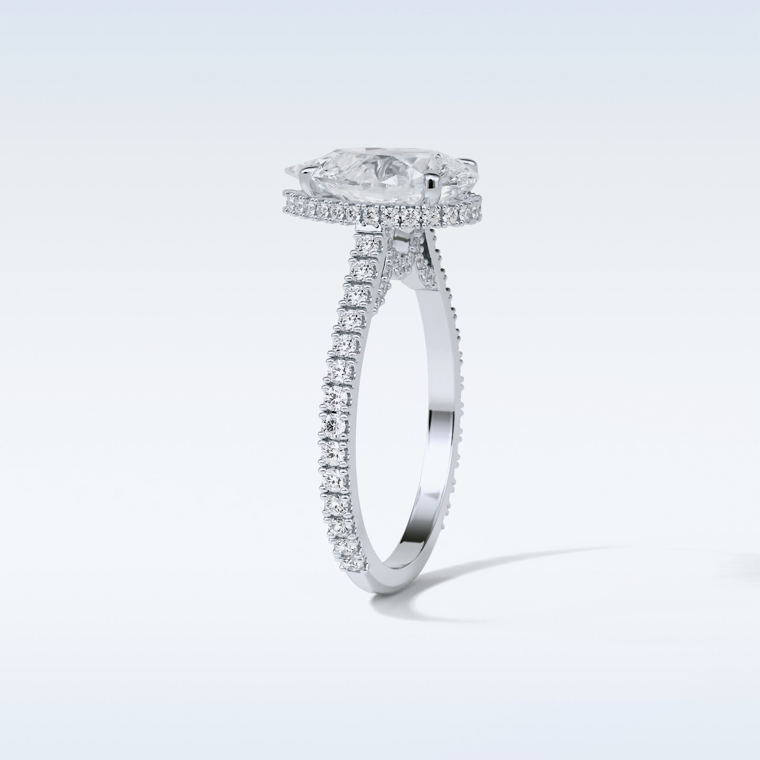 2.8 CT Hidden Halo Engagement Ring Featuring Pear Moissanite
