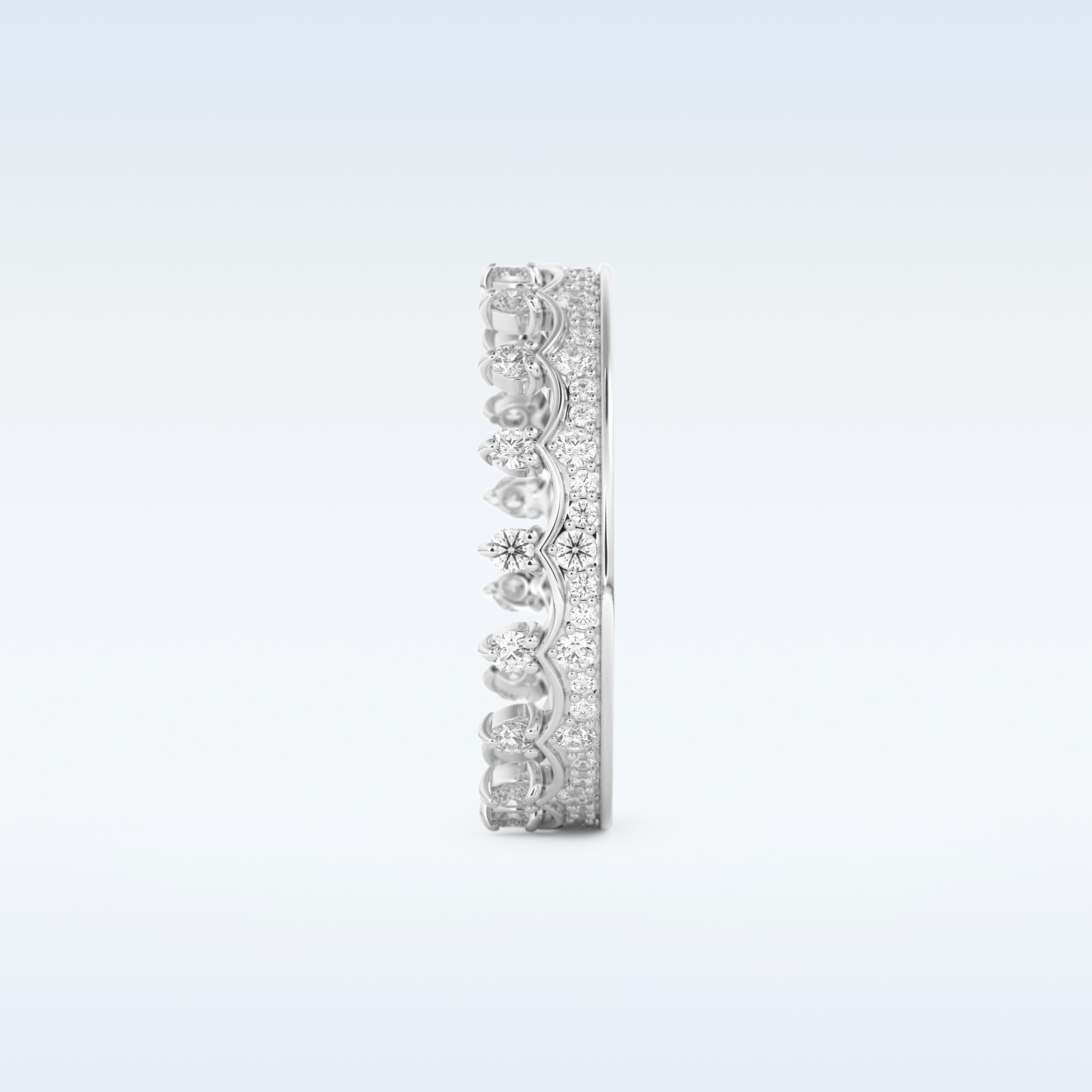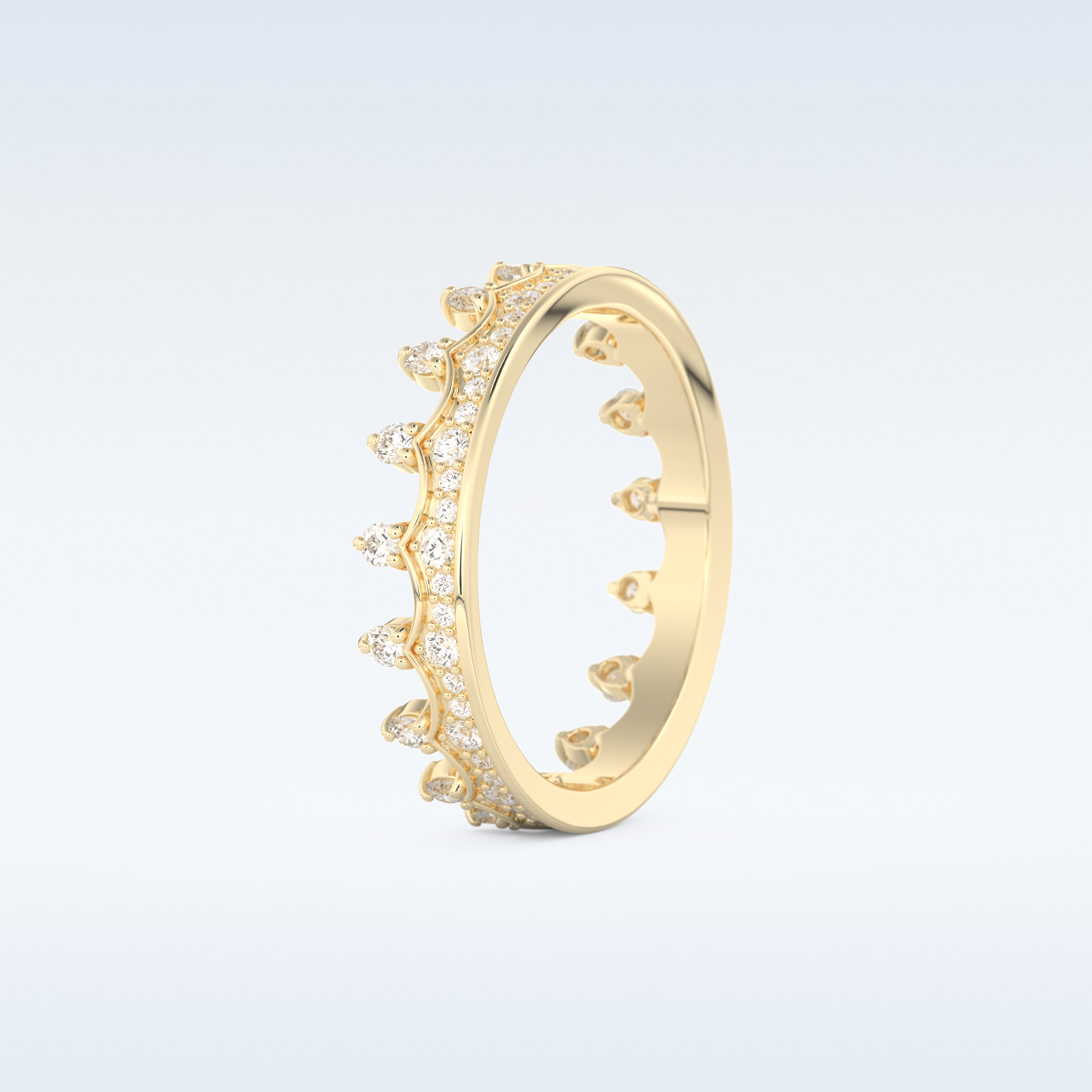A timeless symbol of love and elegance, this Crown Shaped Wedding Band showcases 0.48 CT of Round Cut Moissanite stones. Each stone is precisely set in your choice of 10KT, 14KT, or 18KT gold, available in Yellow, White, or Rose Gold tones. Perfect for weddings, anniversaries, or stacking with an engagement ring.