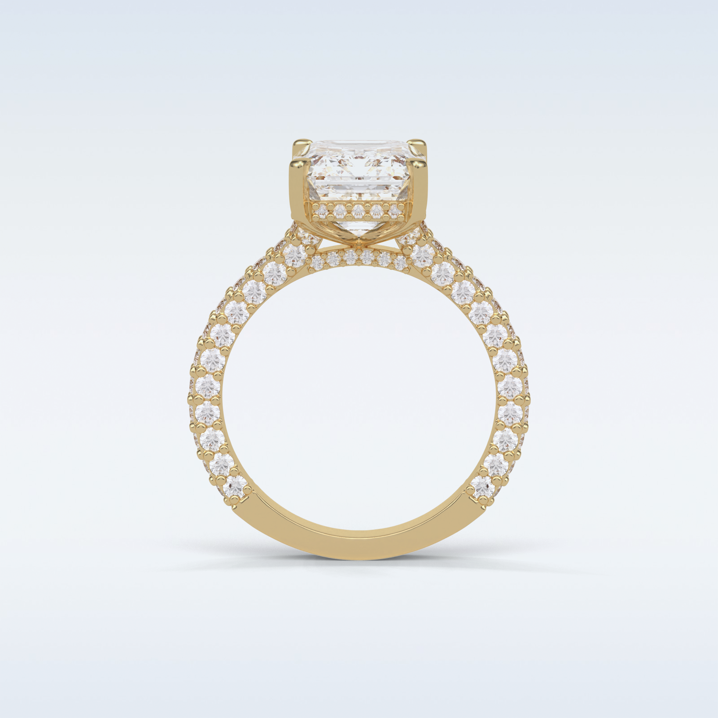 This stunning ring features a captivating 3.24 CT Emerald Moissanite as the center stone, complemented by dazzling Round stones. Set in your choice of 10KT, 14KT, or 18KT gold, it’s available in Yellow, White, or Rose Gold tones — a perfect blend of timeless elegance and modern brilliance.
