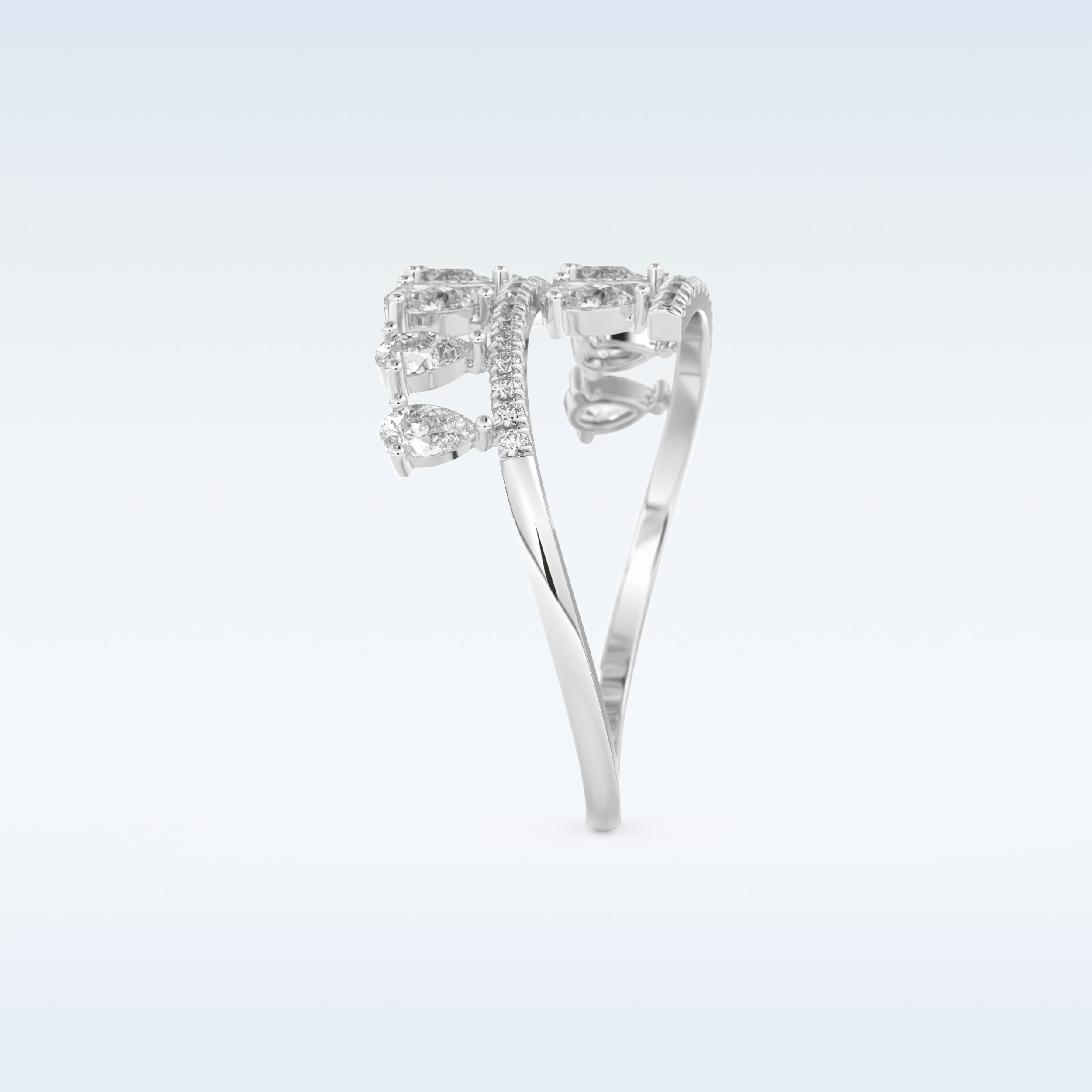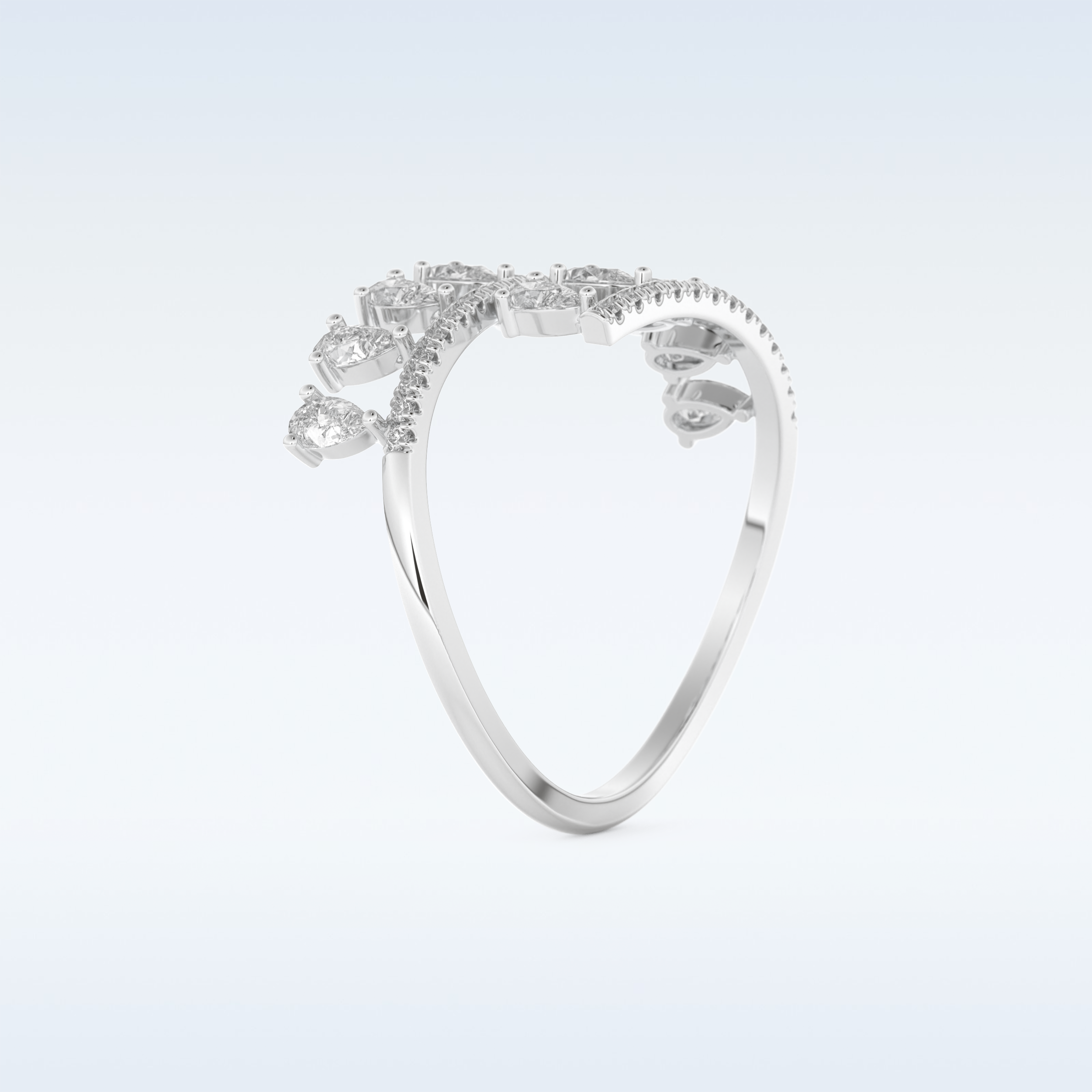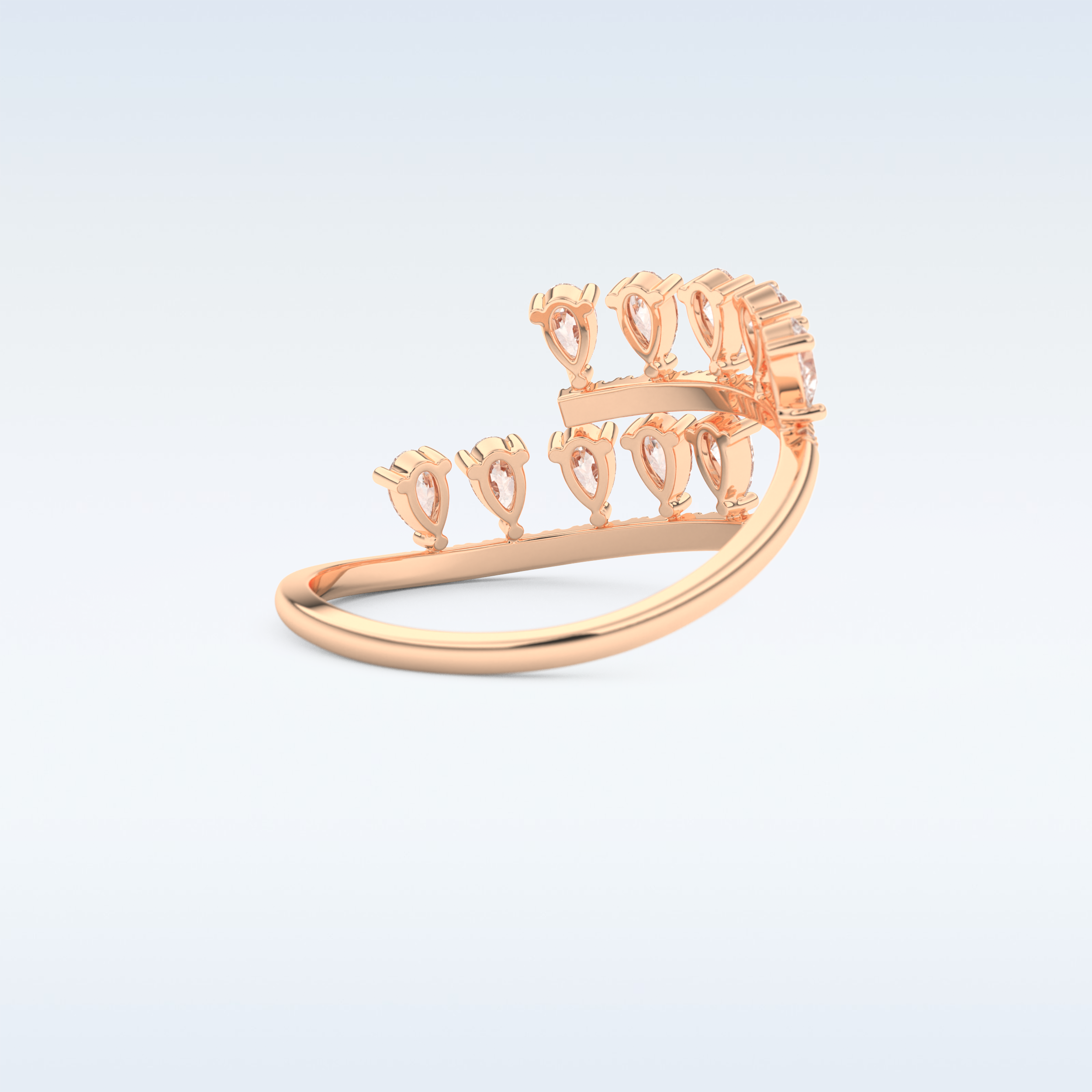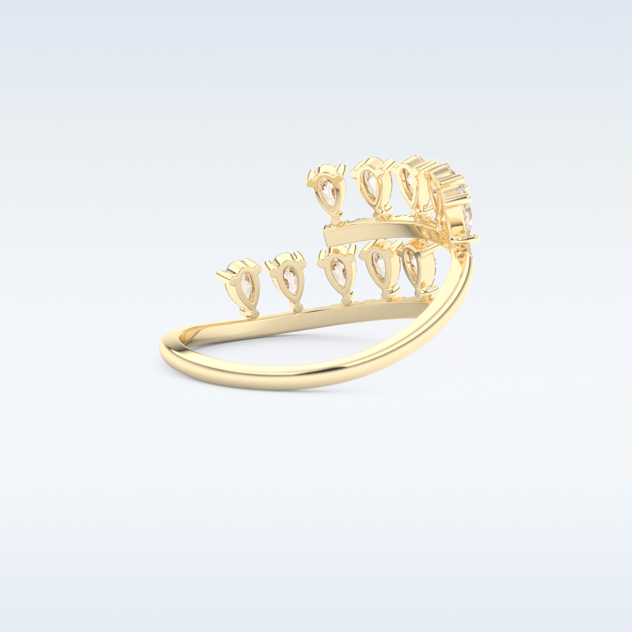 A timeless symbol of love and elegance, this Open Shank Wedding Band showcases 0.69 CT of  Round & Pear Cut Moissanite stones. Each stone is precisely set in your choice of 10KT, 14KT, or 18KT gold, available in Yellow, White, or Rose Gold tones. Perfect for weddings, anniversaries, or stacking with an engagement ring.
