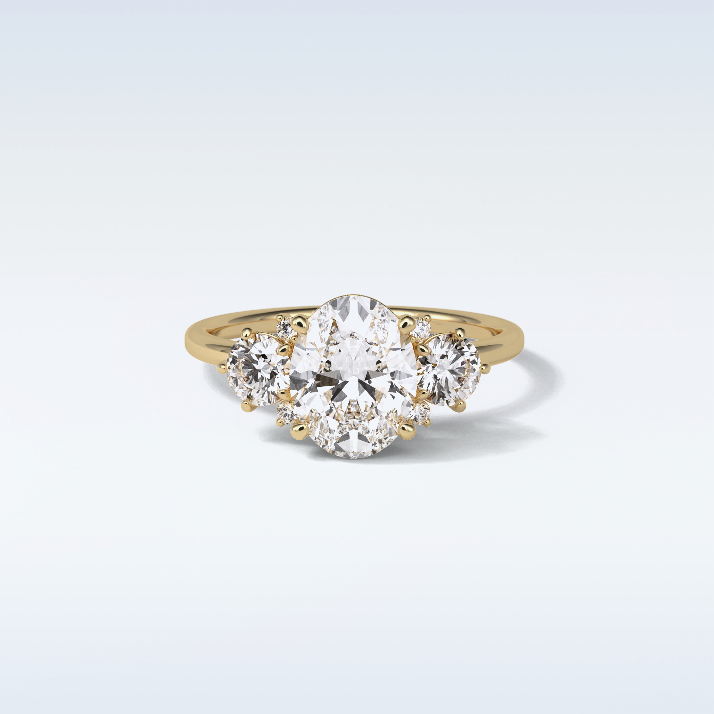This stunning ring features a captivating 1.91 CT Oval Moissanite as the center stone, complemented by dazzling Round stones. Set in your choice of 10KT, 14KT, or 18KT gold, it’s available in Yellow, White, or Rose Gold tones — a perfect blend of timeless elegance and modern brilliance.